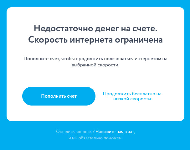 Начнем с YOTA. Когда деньги заканчиваются появляется предложение перейти на темную сторону: