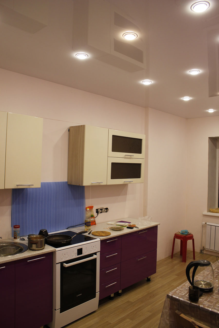 По теме: Квадратные светильники в натяжной лучше не ставить.