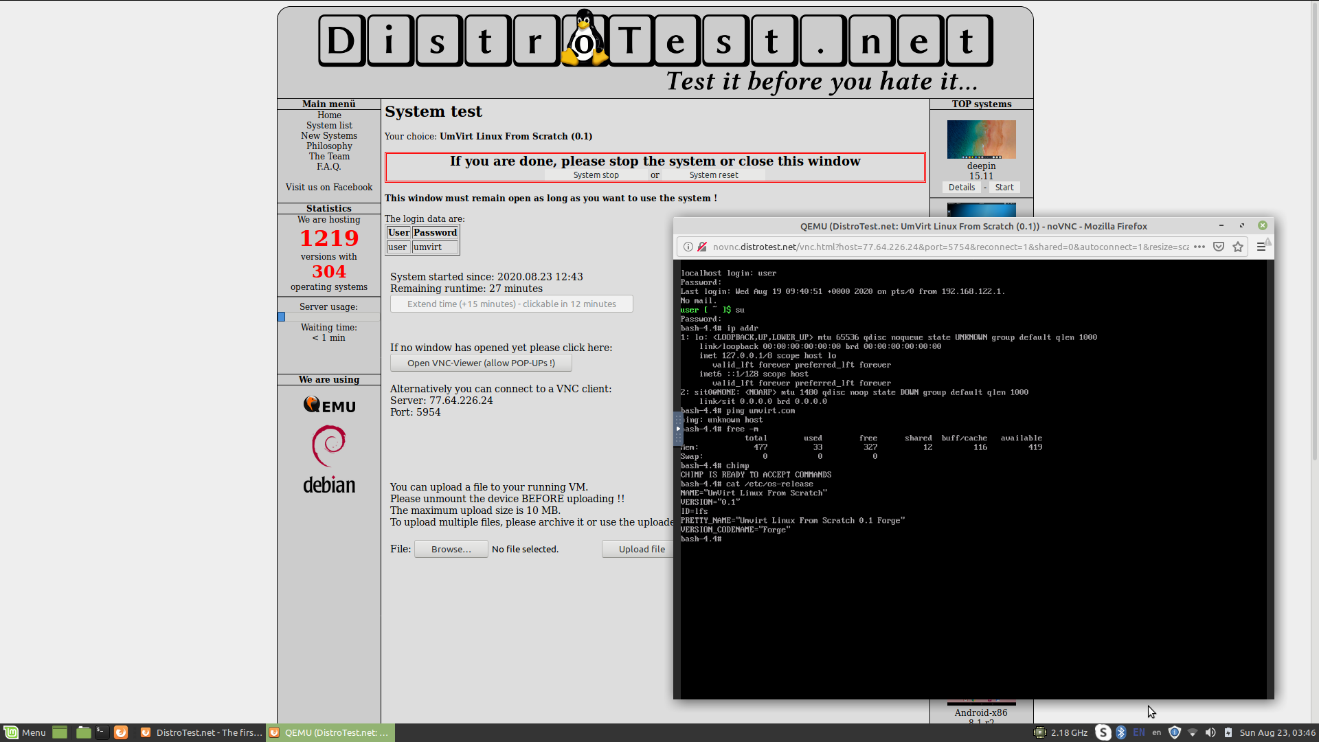 Теперь дистрибутив можно попробовать не устанавливая еще и на сервисе DistroTest.Net